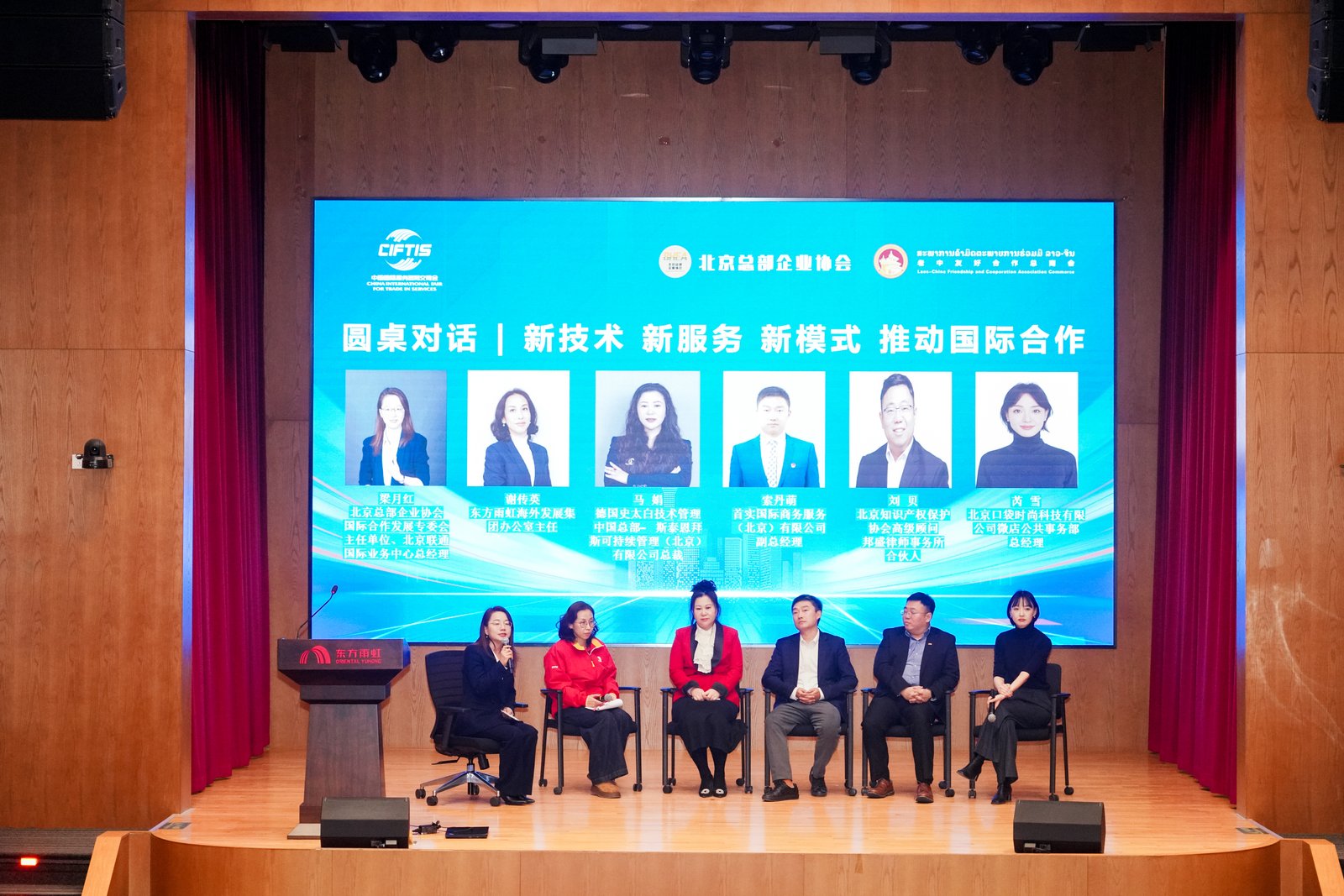 圆桌对话环节成为点睛之笔,由北京总部企业协会国际合作发展专委会负责人主持,北京东方雨虹防水技术股份有限公司海外发展集团、德国史太白技术管理中国总部、首实国际商务服务(北京)有限公司、北京知识产权保护协会、北京口袋时尚科技有限公司围绕新技术赋能、服务升级与模式创新展开交流,分享实践经验与战略思考,为参会企业提供多元实践参考。